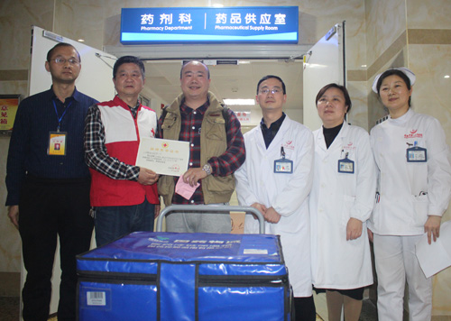 腾瑞制药献爱心 来源:市红十字会 发布时间:2019-04-01 16:36:58 浏览次数: 次 【字体:小 大】 3月27日,上海腾瑞制药有限公司将一批价值2万多元的药物“外用重组人酸性成纤维细胞生长因子”(治疗烧伤、糖尿病溃疡等)通过市红十字会捐赠给市第一人民医院。市红十字会专职副会长张洪(左二)为该公司湖南省区经理刘激扬颁发捐赠荣誉证书 分享到: 【打印正文】