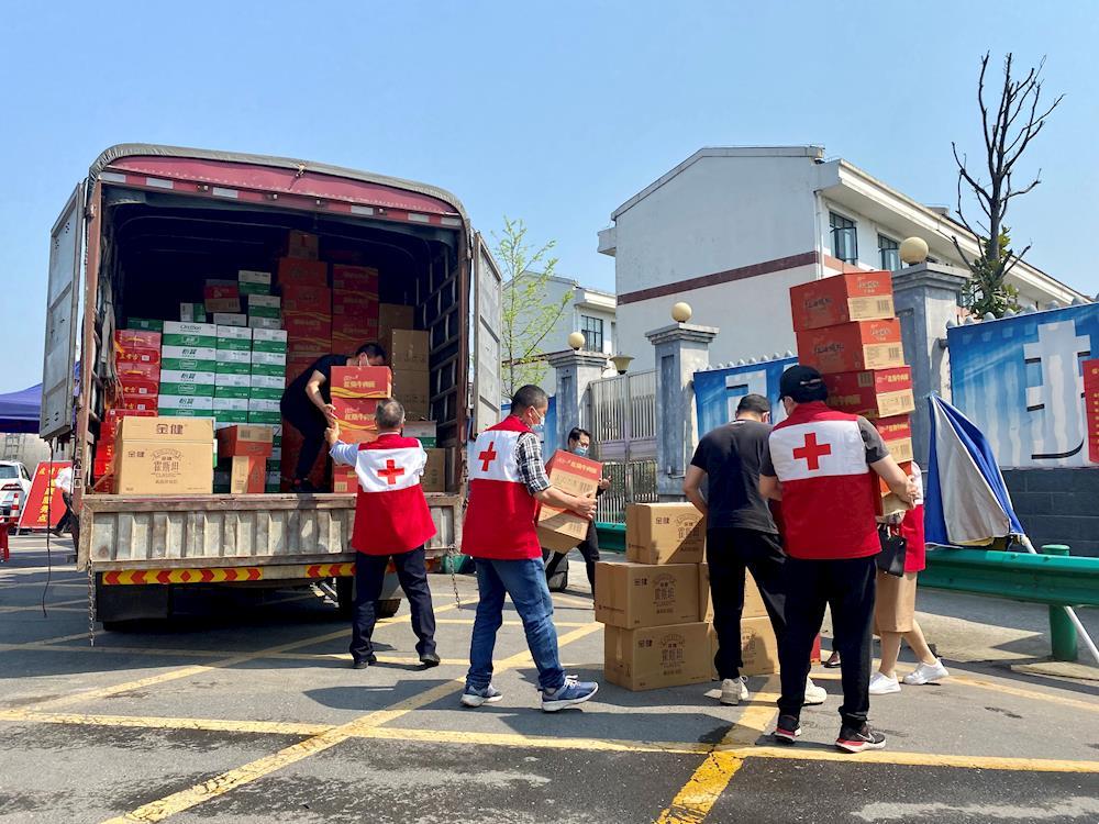当日,市红十字会将慰问物资陆续配送到常德高速环线的芦荻山乡、德山、太阳山、柳叶湖等7个高速公路收费站的防疫卡口,每个卡口集中发放方便面、饮料、矿泉水、牛奶等各类物资各30件。最后,将一批慰问物资送到了常德火车站过渡站房防控值守点。工作人员每来到一处,都会顶着烈日将一箱箱物资从大货车上搬运下来,并找到现场负责人接收,在部分防疫卡口,工作人员还将矿泉水和王老吉亲手送到正在当值的一线疫情防控人员手上,向他们致以诚挚的问候。